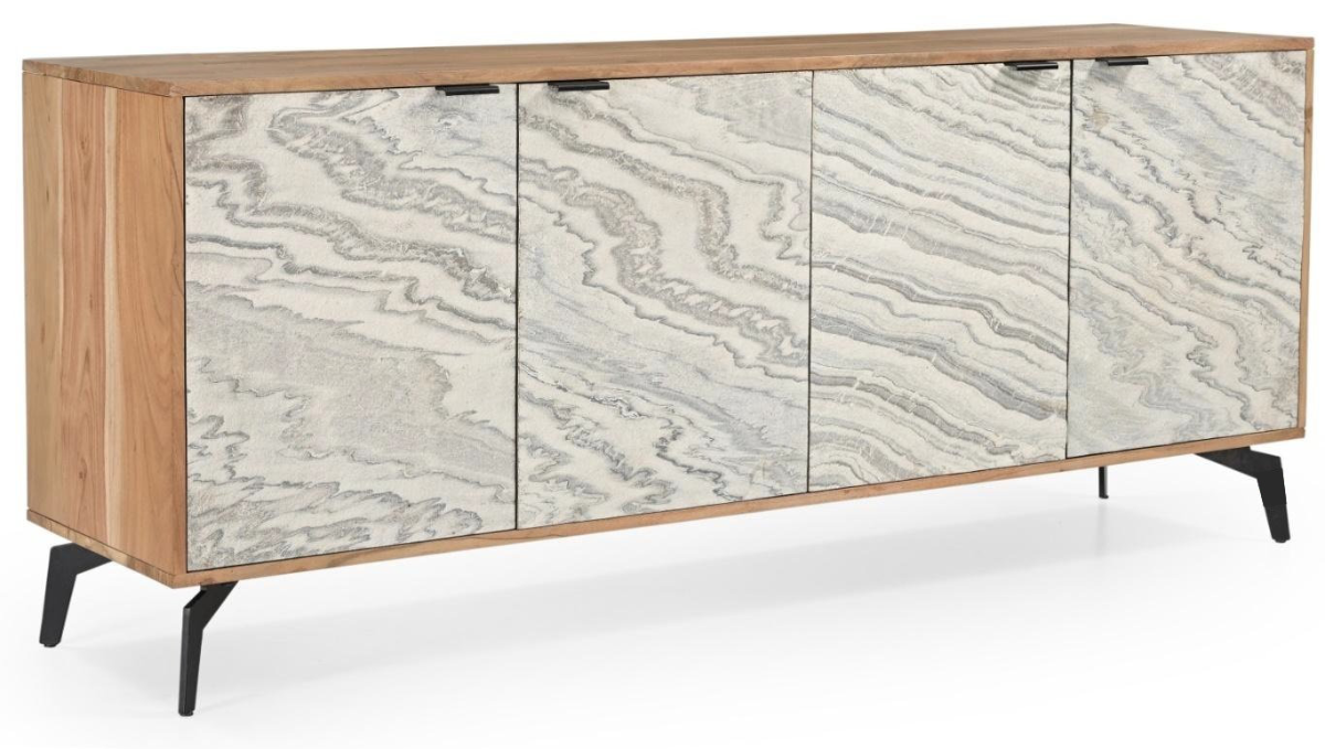 Solid wood server with a natural finish and stone door front.Read More