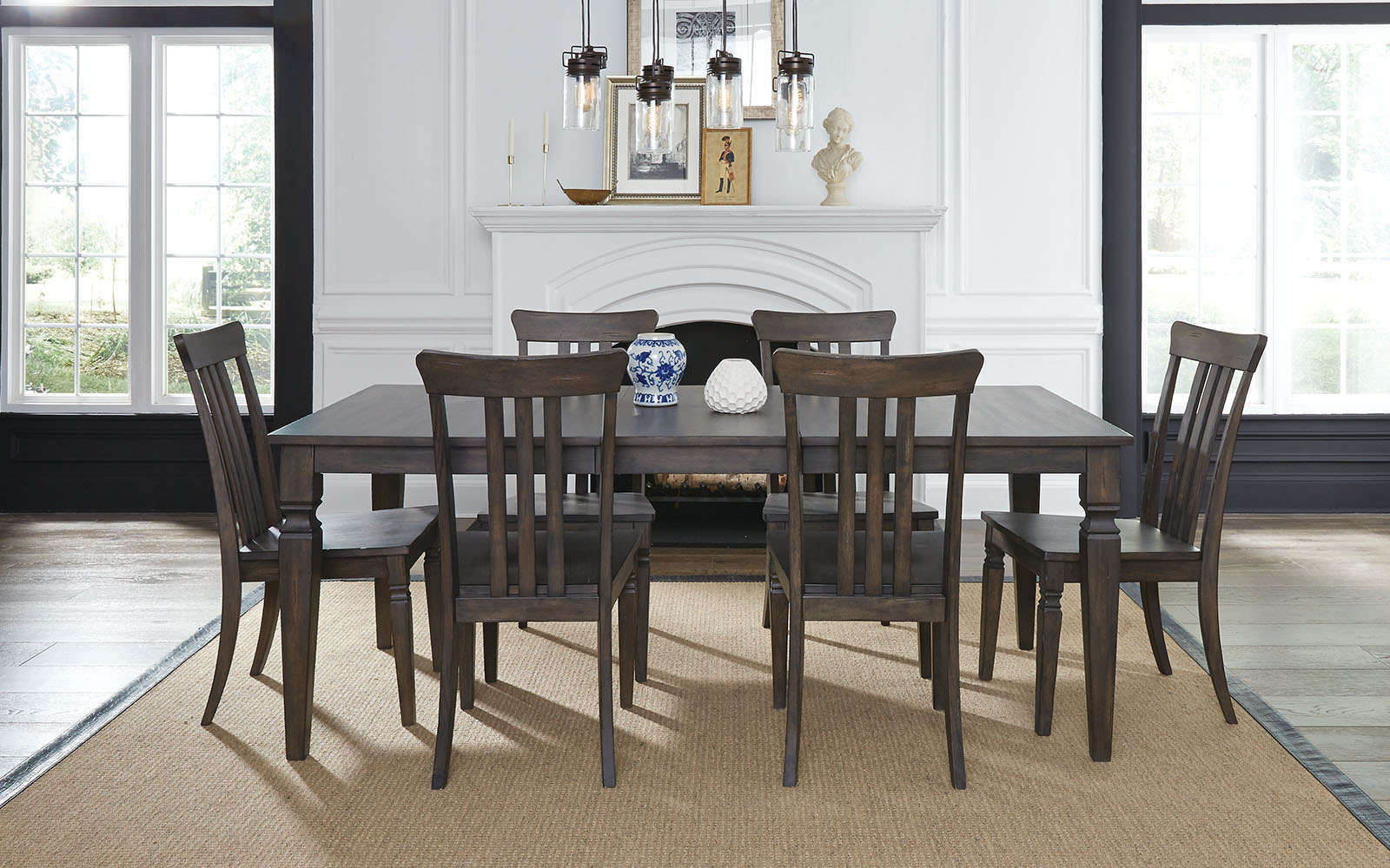 The understated straight-line profiles of Kingston Dining are masterfully crafted from solid hardwood. The deeply distressed hardwood reflects the timeless beauty of colonial style. The ageless beauty, simplicity and flexibility of the design make it a perennial favorite. A self-storing leaf and pull out server trays make entertaining easy.