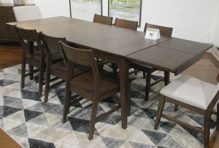 Solid Hardwood dining table with 2 draw-leaf expansion leaves and 4 Upholstered Side Chairs with Coffee FinishRead More