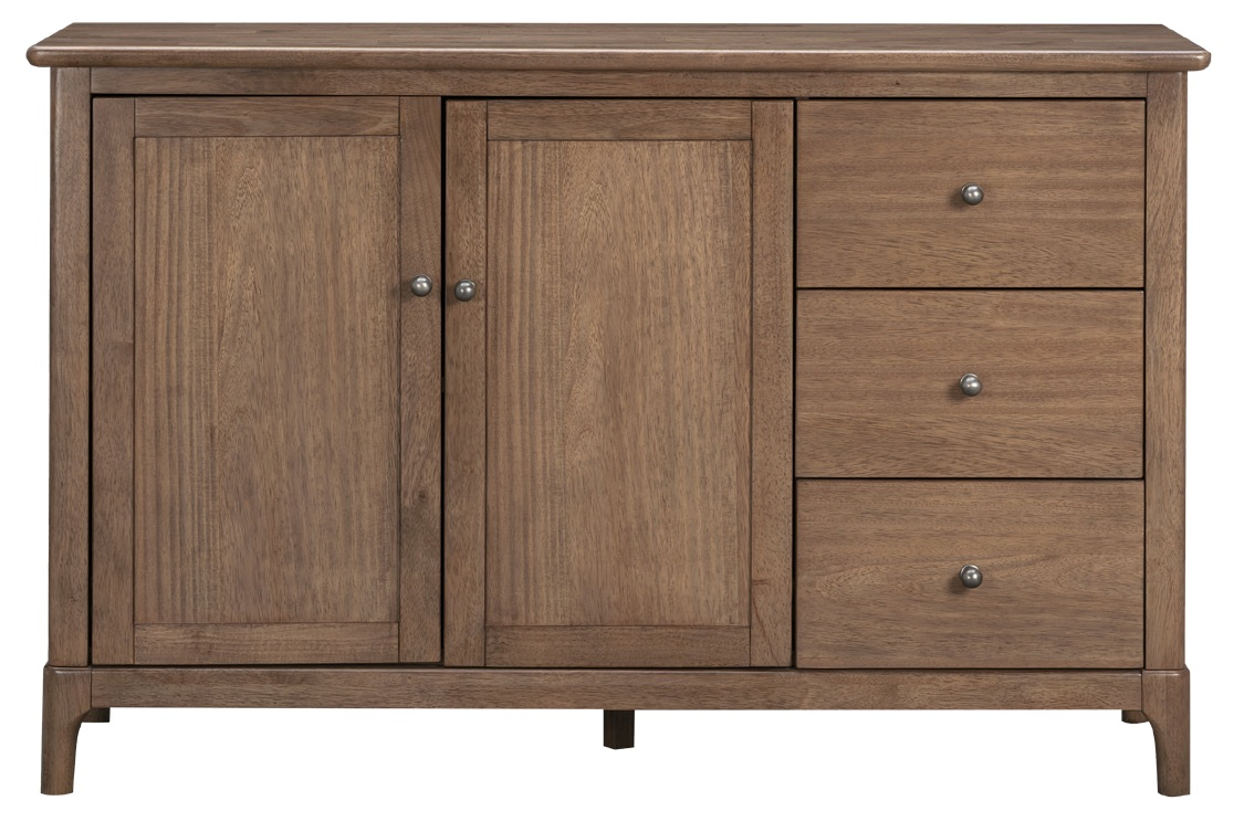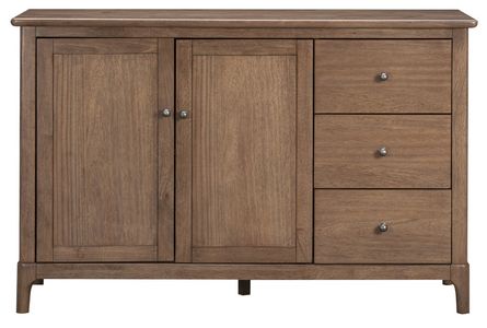 Made from solid hardwood featuring a clean Mid-century Modern aesthetic. This collection showcases simple lines and smooth edges with radius-tapered legs, 3-Drawer storage and 2 door cabinet.Read More