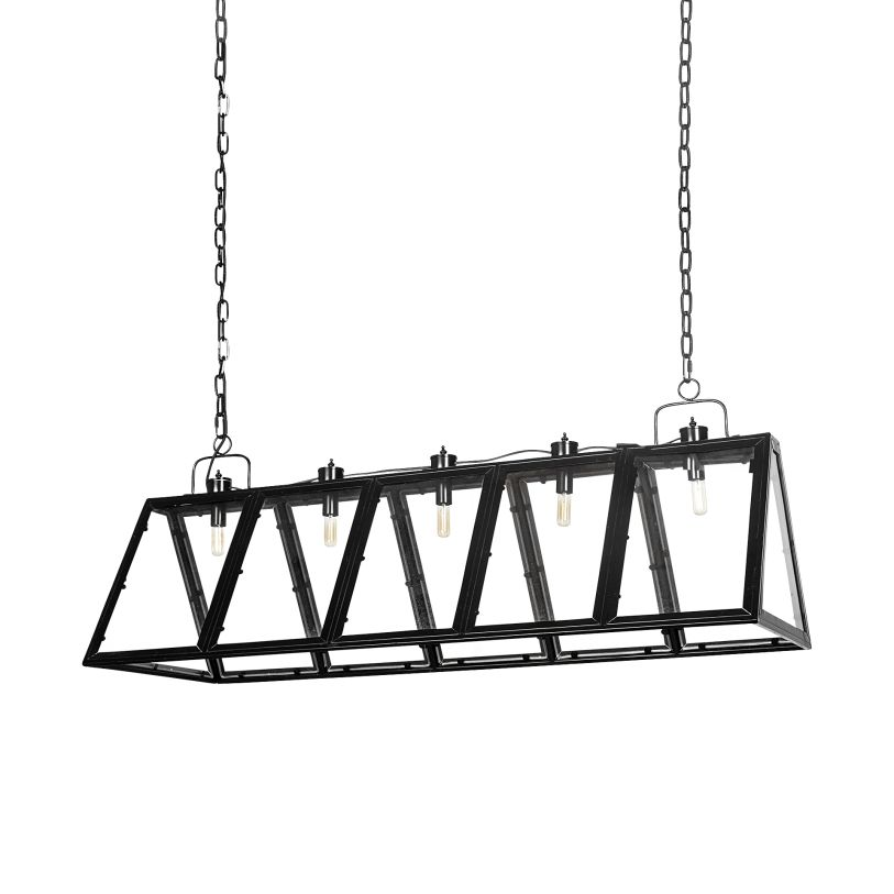 The Antigon II is a unique, industrial-inspired, metal and glass chandelier that features a metallic black toned, triangular metal chassis with glass paneling. Inside the triangular chassis are five, 60 watt rated, E12 bulbs (Sold Separately) that cast a stunning ambient glow. Sporting a unique design that is complemented by a premium finish.Read More
