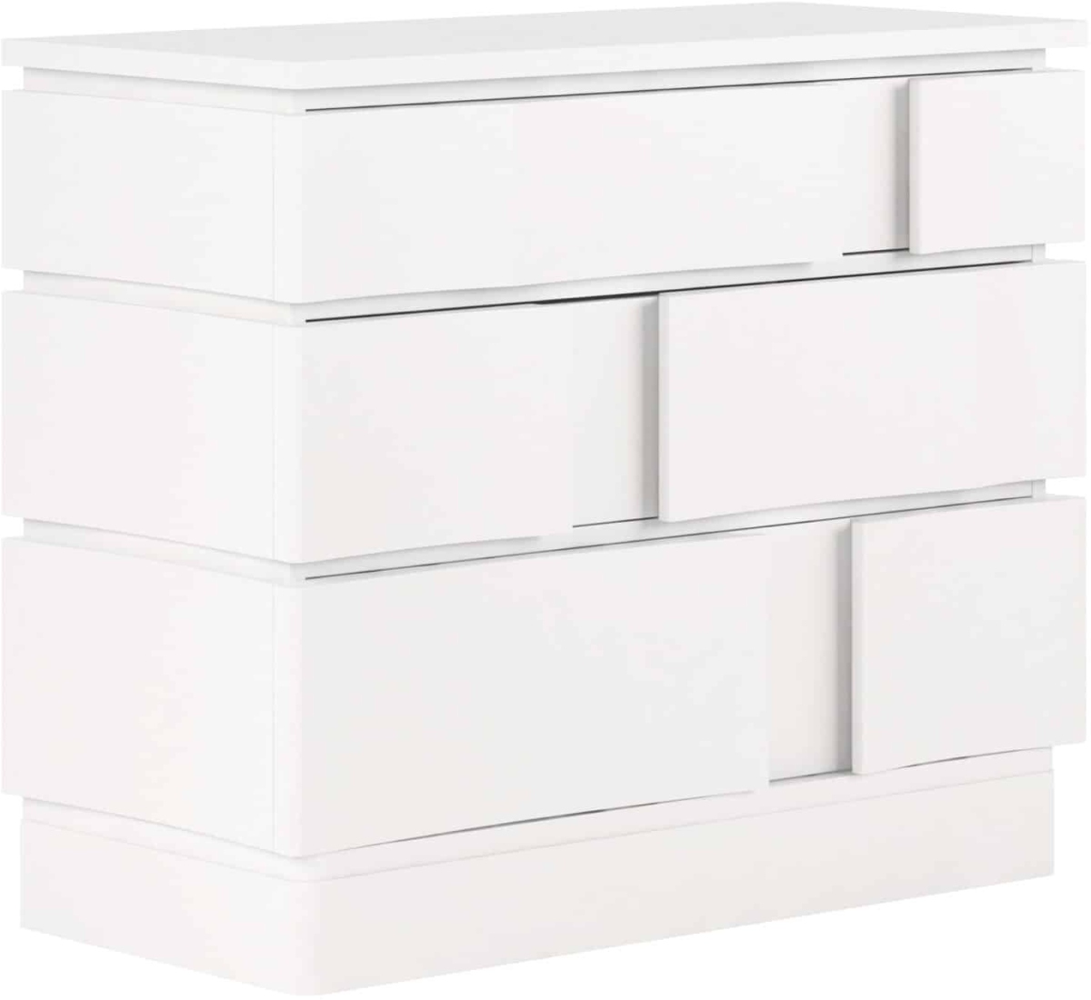 Brick by brick, this three drawer chest rises from the floor with the overlapping pattern of a classic block wall. Finished in a subtly textured, white plaster, the exterior delivers a sense of fresh minimalism that complements the sleek style of this modern collection.Read More