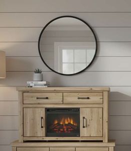 Natural rustic finish over replicated oak grain with authentic touch. Case features framed top and large scale dark bronze colored hooded pulls and knobs. Side roller glides for smooth operating drawers. Two spacious hidden storage compartments behind doors. Compatible with W100-101 fireplace inserts.Read More