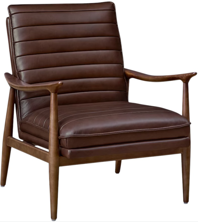 The Ellis Leather Accent Chair is a "retro-cool" piece designed for "luxe comfort." It's open silhouette and contoured solid birch frame are covered in top-grain, protected leather, with your choice of a matte Mushroom or glossy Brown finish.Read More