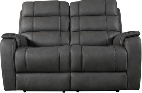 Power reclining loveseat in gunmetal finish.