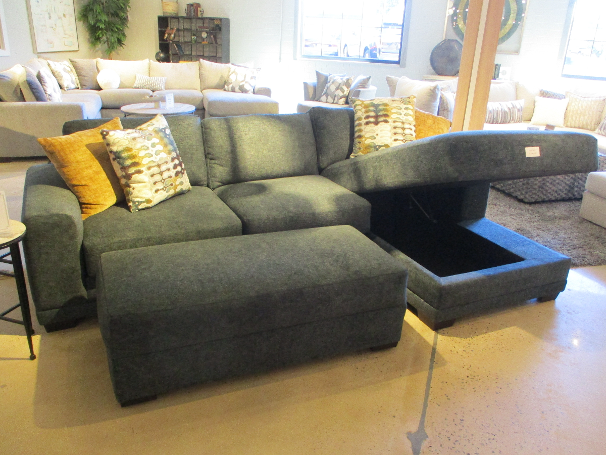 Casual style sofa with storage chaise and accent pillows.Read More