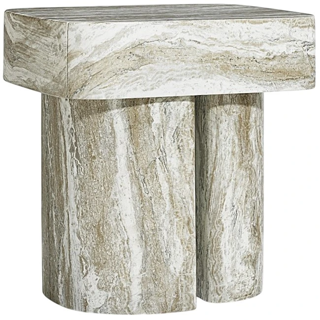 Totemic shapes support the top of the Arcadia nightstand for a beautiful modern, primitive look. Faux stone offers lovely striations in the kalta finish. The case includes one soft-close drawer with a finger pull.Read More
