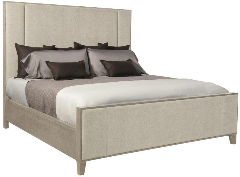 With clean lines and casual finishes, the Linea upholstered panel bed delivers rustic modern style with a high level of sophistication. The wood frame and side panels feature a Cerused Greige finish that complements the soft neutral tone of the fabric on the headboard and footboard.Read More
