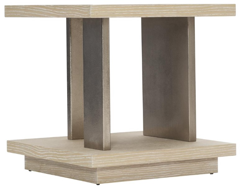 Cast aluminum panels in varying sizes create compelling supports for the Solaria side table. Resting on a plinth wooden base, the panels pierce the wooden top to create a stunning inset pattern on the tabletop. Quartered white oak veneers feature a Dune finish, while metal accents add shine.Read More