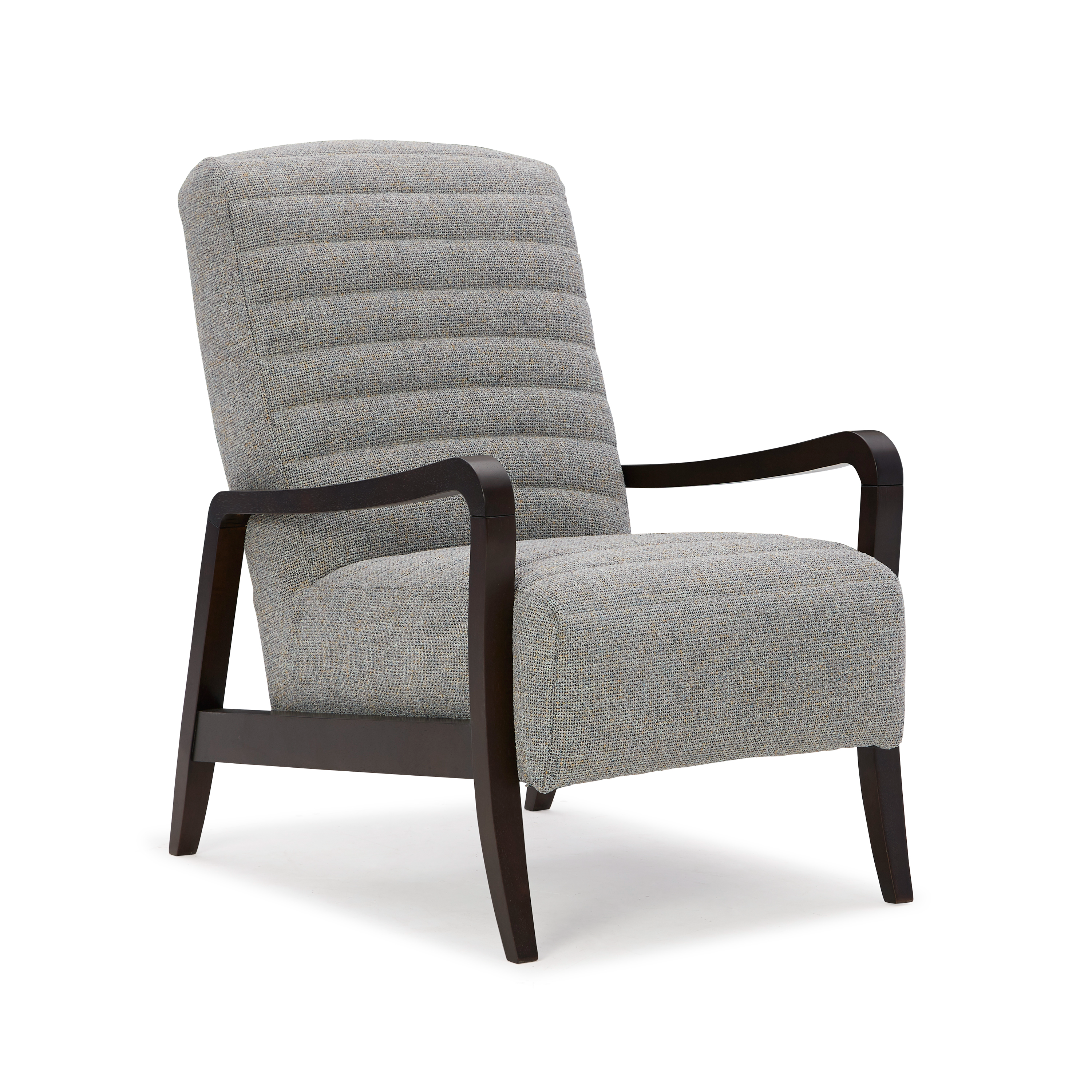 The Emorie Accent Chair has sleek lines supported by the curved wooden frame which offers an eye catching contrast which teases the senses. The tall, solid foam back and channel tufting that accents both seat and back is what makes the Emorie unique. With 700 fabric choices, you're sure to find a match. The wooden legs are available in three finsihes: Dark Walnut, Espresso, and Riverloom. Built in the USA by fine craftsmen.