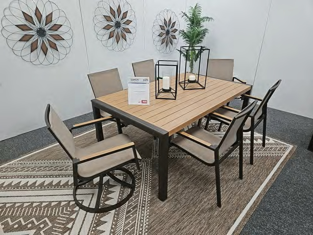 Balancing effortless natural beauty and minimalist design, the Carlsbad Beach outdoor dining package seamlessly brings your contemporary style outside. Sporting a wood-look finish, this sleek yet durably made set refines the art of relaxed outdoor living. The sleek sling arm chair features sling fabric seat and back and aluminum frame with stainless steel hardware.Read More