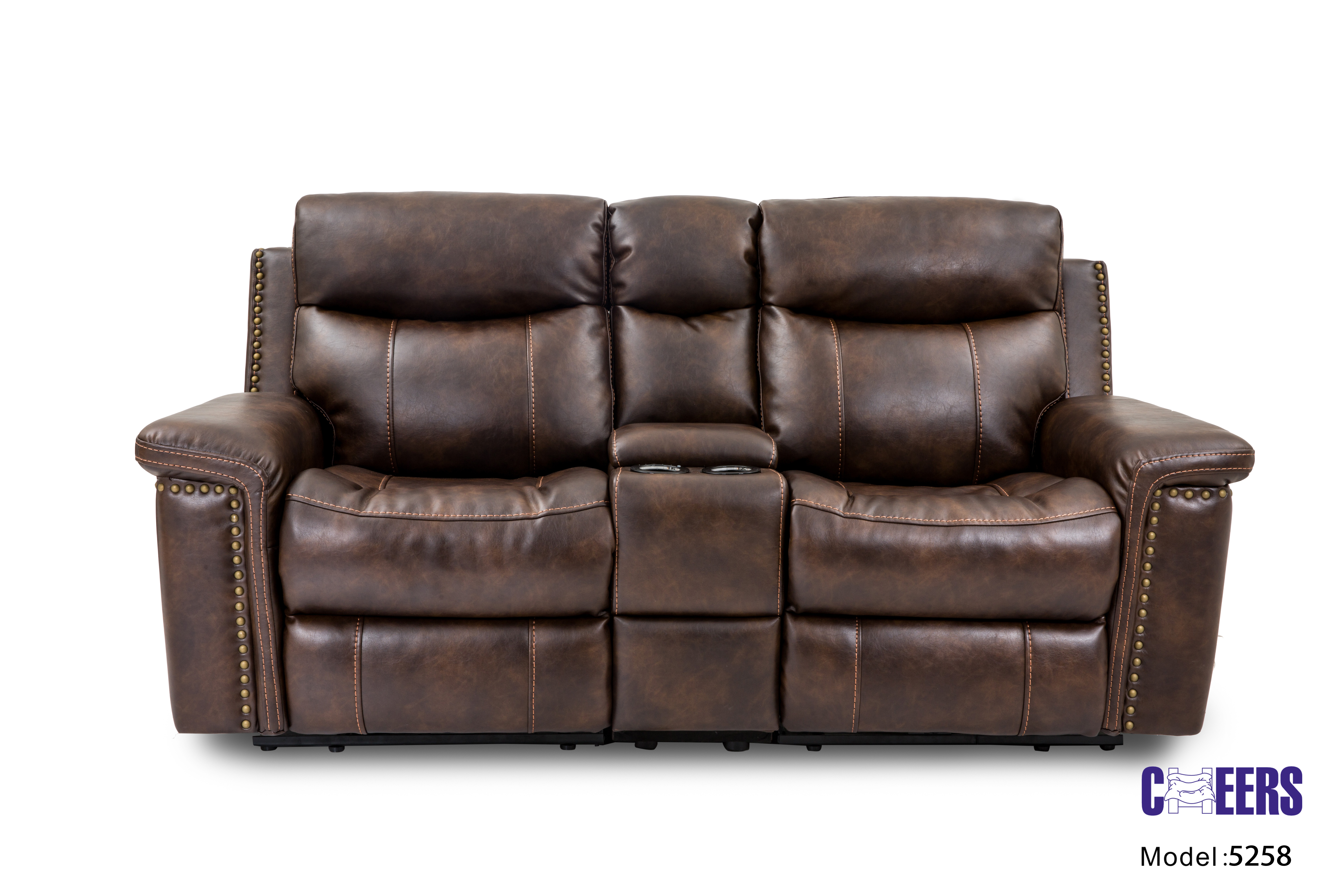 Recline in luxury with the Cheers Power Reclining Loveseat with Power Headrest support and storage console, constructed with high quality upholstery and beautiful nail-head accents.Read More