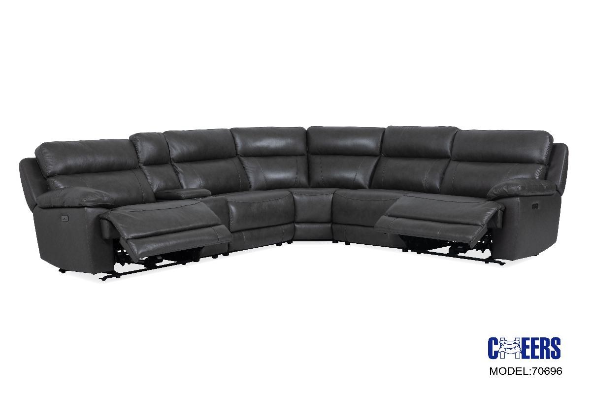 Leather Power Reclining 6 Piece Sectional featuring Left and Right Power Recliners, 2 Armless Power Recliners, Wedge and Console.Read More