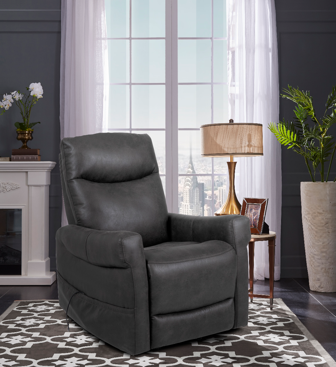 Cheers track arm power lift recliner in a grey fabric supports up to 360lbs.Read More