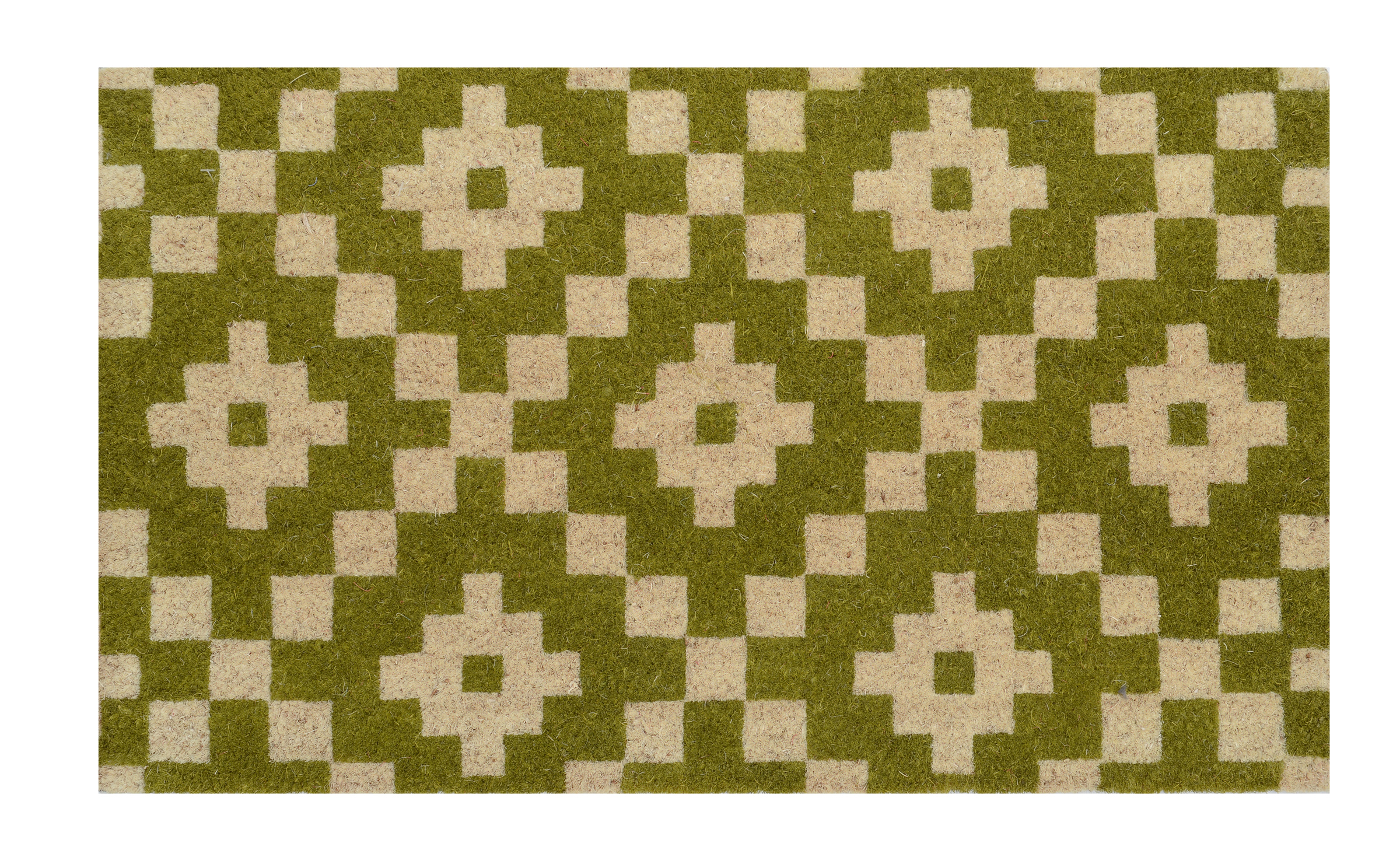 Welcome your guests to your home with this beautiful green and beige door mat!