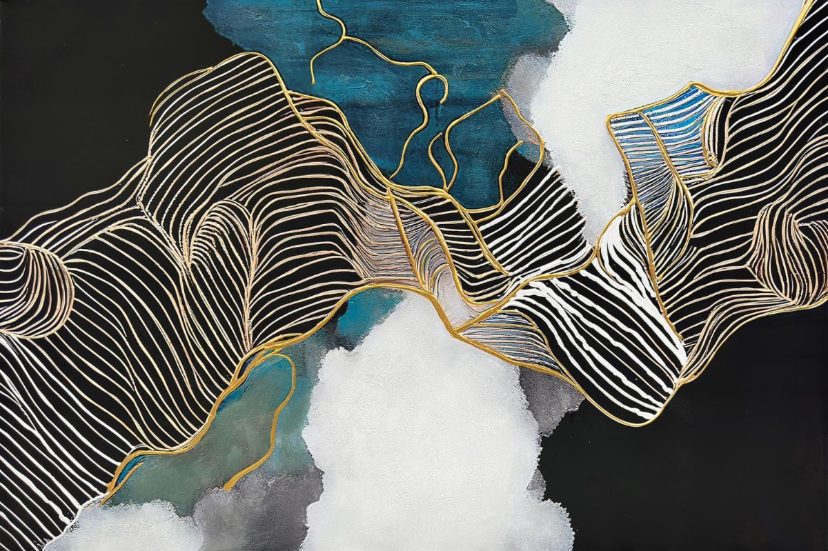 Classy Art Hand Painted Textured Canvas - "Golden Currents"