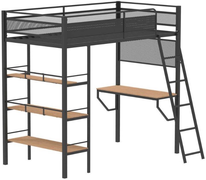 This twin-size loft bed combines sleep and productivity in a compact vertical design, perfect for space-conscious bedrooms. The matte powder-coated metal frame features mesh panel accents and full-length guardrails for safety.Read More