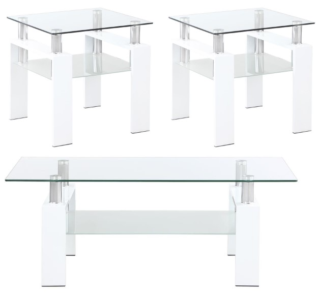 The Dyer 3-piece Rectangular Coffee and End Table Set in white offers a simple yet elegant look. The clean lines and smooth finish provide a fresh, modern aesthetic, while the sturdy construction ensures both style and functionality for any living space.Read More