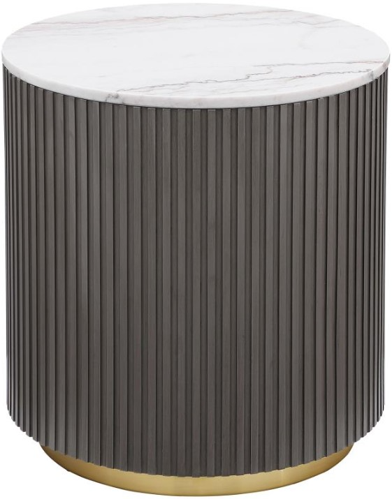 Set an elegant tone in your space with a modern glam end table. This round table features a drum silhouette complete with a ribbed base and recessed platform that create dimension. The table is a sophisticated choice, topped with a round of white marble that adds elegance to any seating area or nook.Read More