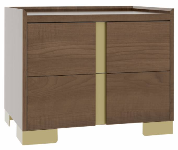Shown in Brown Maple wood finish with D2 drawer fronts and metal legs