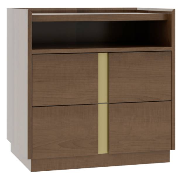 Shown in Brown Maple wood finish with D2 front drawers and plinth base
