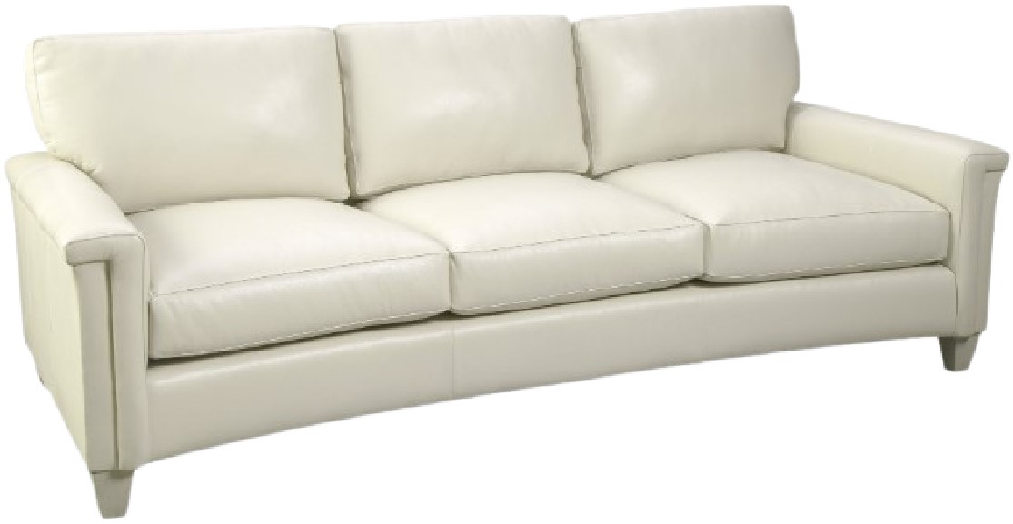 Dramatic shaping is the hallmark trait of this elegant curved-front leather sofa. It features a unique padded arm treatment, tapered legs, and French seaming as well as blend-down coil seating and attached back pillows.Read More