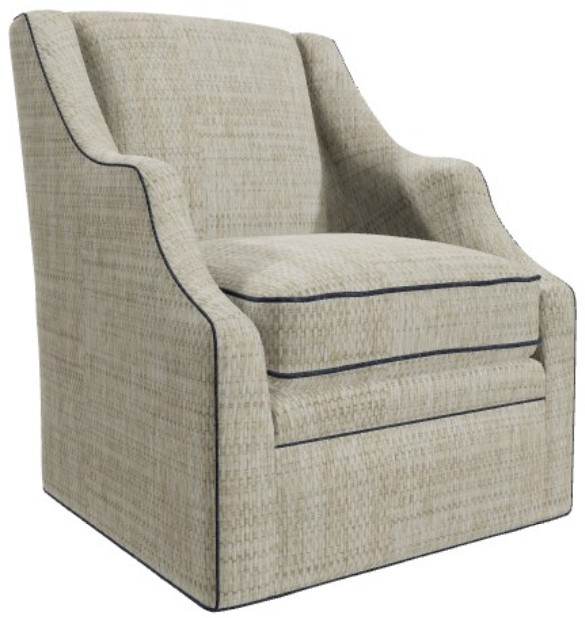 This chic swivel chair will be your new favorite- all you have to do it sit down and relax. Perfectly proportioned for comfort, it features elegant shaping in the arms and a plush, tight back.Read More