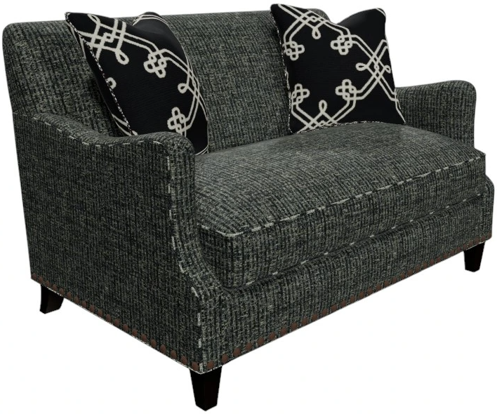 Embrace timeless charm with this beautiful English Arm Settee. A plush bench seat, graceful English arms, and refined nail head trim create a classic silhouette. Tapered legs and two toss pillows complete the look with effortless elegance. Tight Back. Also available without nail head trim.Read More