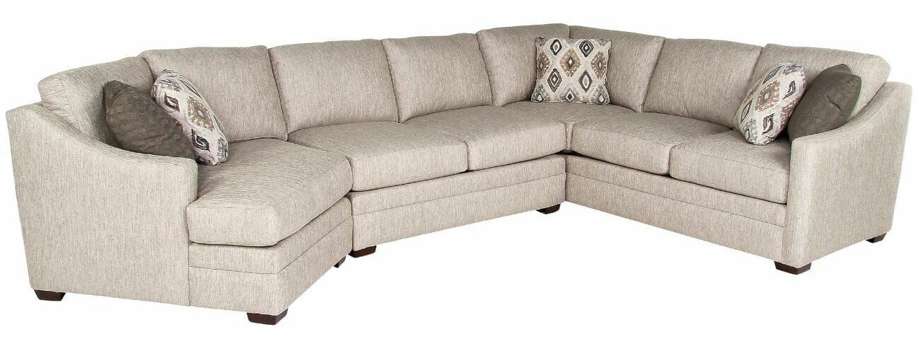 Clear luxury has never looked as good as with Craftmaster's Kaydence three Piece Sectional. This sectional sofa fits a variety of spaces with a versatile color and gives you the perfect place to sit and relax. Contains cuddler facing left arm, loveseat armless arm and sofa facing right arm with back and 5 accent pillows.