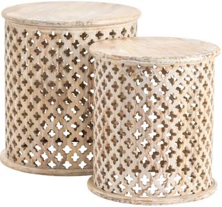 Drum-style bases accented with a decorative cross design
