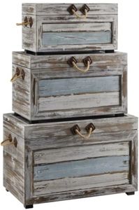 This set of Crestview Collection Nantucket Weathered Wood Trunks comes in a light gray wood finish and gentle weathered blue and pale white accents. They are delightful as a stacked display in your home, or individually any place you'd like storage with a coastal flair.Read More