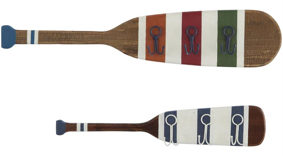 Place the paddle set of 2 coat hooks in your entryway for hanging coats, hats, or keys, alongside a rustic wooden bench or console table. This item ships in 1 carton. Wood wall hook makes a great gift for any occasion. Can be hung horizontally using the keyholes; nails and screws not included. Suitable for indoor use only. This item ships fully assembled in one piece.