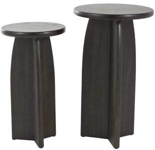 Wood is expertly shaped, cut, and polished with precision to form a cohesive traditional set of 2 small tables, showcasing a harmonious blend of craftsmanship and refined design