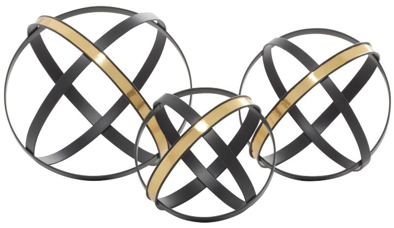 Embrace artistic expression with a style that highlights bold designs with sleek lines, neutral elements, and a minimalist aesthetic. Black decorative sculpture set is made of solid iron strips forming orb shapes.Read More