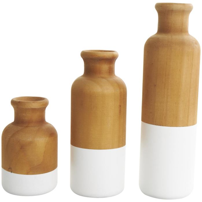 This modern farmhouse set of 3 vases for home decor is carved from pine wood and applied with a brown and white color combination