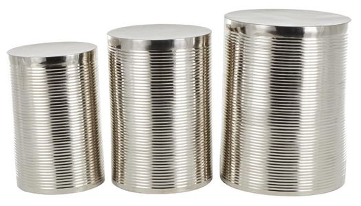 Embrace artistic expression with a style that highlights bold designs with sleek lines, neutral elements, and a minimalist aesthetic. Silver side end accent table set is crafted from iron, ensuring durability and robustness. Ribbed cylinder table set exhibits a shiny silver finish, exuding a contemporary and sophisticated vibe.Read More