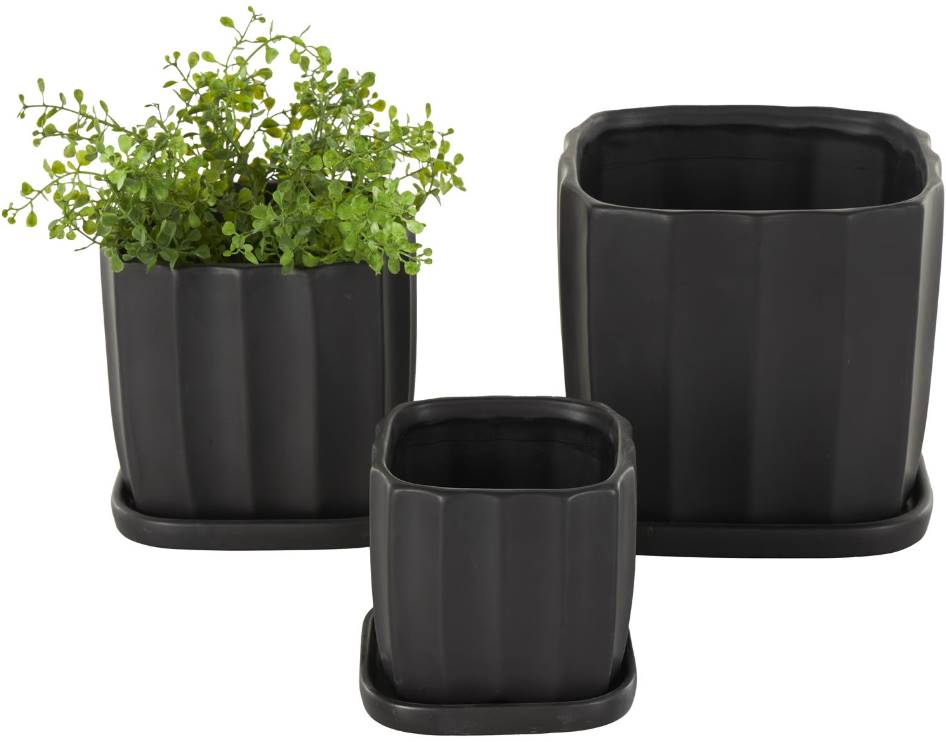 Ideal for both indoor and outdoor use, this black set of 3 small planter pots can effortlessly enhance the aesthetics of your living room or patio. This item ships in 1 carton. Please note that this item is for decorative purposes only and is not food safe. Ceramic planter makes a great gift for any occasion. Suitable for indoor and outdoor use. This item ships fully assembled in one piece. Maximum weight limit is 15 lbs.