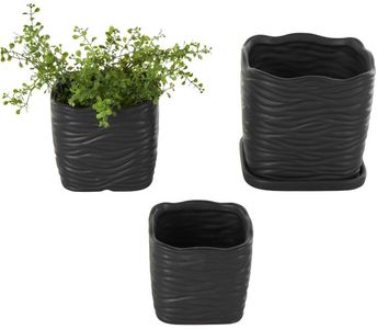 Suitable for various settings, this black set of 3 large planter pots can be used to enhance your living room, patio or office decor. This item ships in 1 carton. Please note that this item is for decorative purposes only and is not food safe. Suitable for indoor and outdoor use. This item ships fully assembled in one piece. Maximum weight limit is 15 lbs.