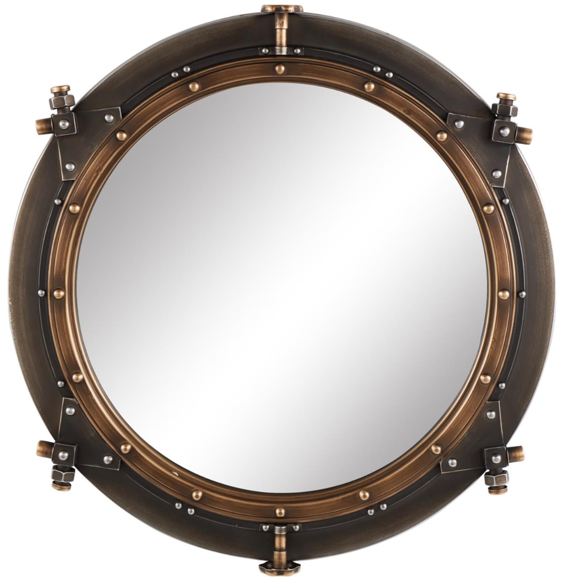 Shiny brass mirror for wall is perfectly round, adding a classic charm to any space