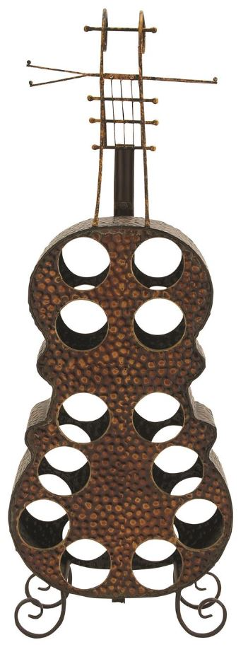 This wine rack features 12 wine bottle slots and wine glass holders in a cello figure design for a classy and jazzy time.