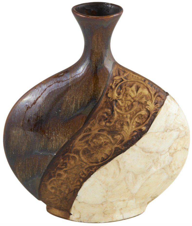Designed with timeless sophistication, rich old-world textures and warm hues come together for a refined classic taste of luxury. The brown decorative vase is made from high-quality ceramic material. The round home decor vase features cream, light brown, and rich brown colors with a polished finish. The ceramic vase boasts intricate 3D bird designs.Read More