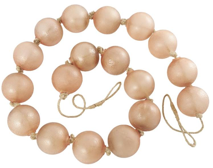 A warm and welcoming way to elevate the look of your tablescape and complement your existing decor. Give your surface space a finishing touch with these beautifully crafted decorative garland. Style the pink large beads with loop draped across a mantel or staircase, or as a centerpiece in a bowl to create stunning visual impact and texture. This item ships in 1 carton. This modern glass orb garland can be used year-round or for special occasions, serving as a captivating festive decoration. Glass garland with tassel makes a great gift for any occasion.