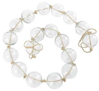 A warm and welcoming way to elevate the look of your tablescape and complement your existing decor. Give your surface space a finishing touch with these beautifully crafted decorative garland. Style the clear large beads with loop draped across a mantel or staircase, or as a centerpiece in a bowl to create stunning visual impact and texture. This item ships in 1 carton. This modern glass orb garland can be used year-round or for special occasions, serving as a captivating festive decoration. Glass garland with tassel makes a great gift for any occasion. Due to the handmade nature of these, there will be slight color, shape, and size variations, as well as loose fibers.