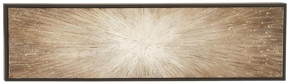 This wall art exude natural beauty and sophistication in both color and composition. Showcase your personality and turn your walls into an art gallery with this impressive wall art. The starburst canvas wall art is perfect for contemporary, eclectic, and modern-themed living room or office. This item ships in 1 carton. Can be hung horizontally using the sawtooths; nails and screws not included. Suitable for indoor use only. This item ships fully assembled in one piece.