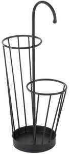 Cylindrical shape of the stand, coupled with the pattern created by the two sections and umbrella-shaped handle