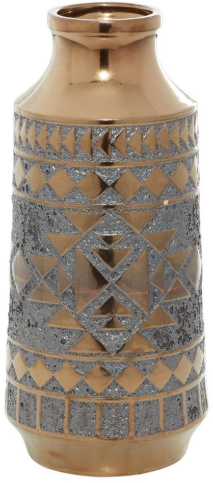 The porcelain vase features intricate tribal patterns and variations of finishes that add a unique touch.