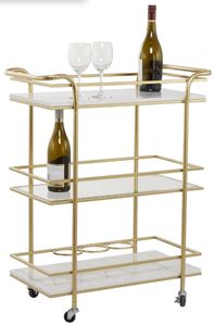 A versatile piece ideal for storage or decorative display in any space. Looks stylish in your living room or kitchen as a serving tray or as a decor stand. Our stylish and elegant 3 tier rolling bar cart is an amazing home storage item to place in your bar or any living area. This item ships in 1 carton. Suitable for indoor use only. This item ships fully assembled in one piece. Marble is a product of nature and no two pieces are exactly alike.