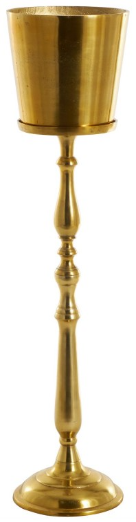 Entertain in style or use as a storage display to keep your bottled beverages cool and protected on any surface with this standing gold wine bucket. This item ships in 1 carton. Aluminum ice bucket makes a great gift for any occasion. Suitable for indoor use only. This item ships fully assembled in one piece.