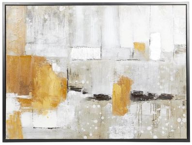 Embrace artistic expression with a style that highlights bold designs with sleek lines, neutral elements, and a minimalist aesthetic. The gray living room framed wall art is crafted from polystone, fir wood, and canvas materials. This rectangle decorative framed wall art comes in a textured finish with gray, white, and yellow colors within a black frame.Read More