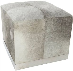 Crafted from high quality leather, stainless steel, and MDF, this contemporary pouf is designed for durability and filled with foam for comfort. Our gray and beige leather pouf has a natural textured finish and a sleek silver base that adds a touch of elegance to any room.Read More